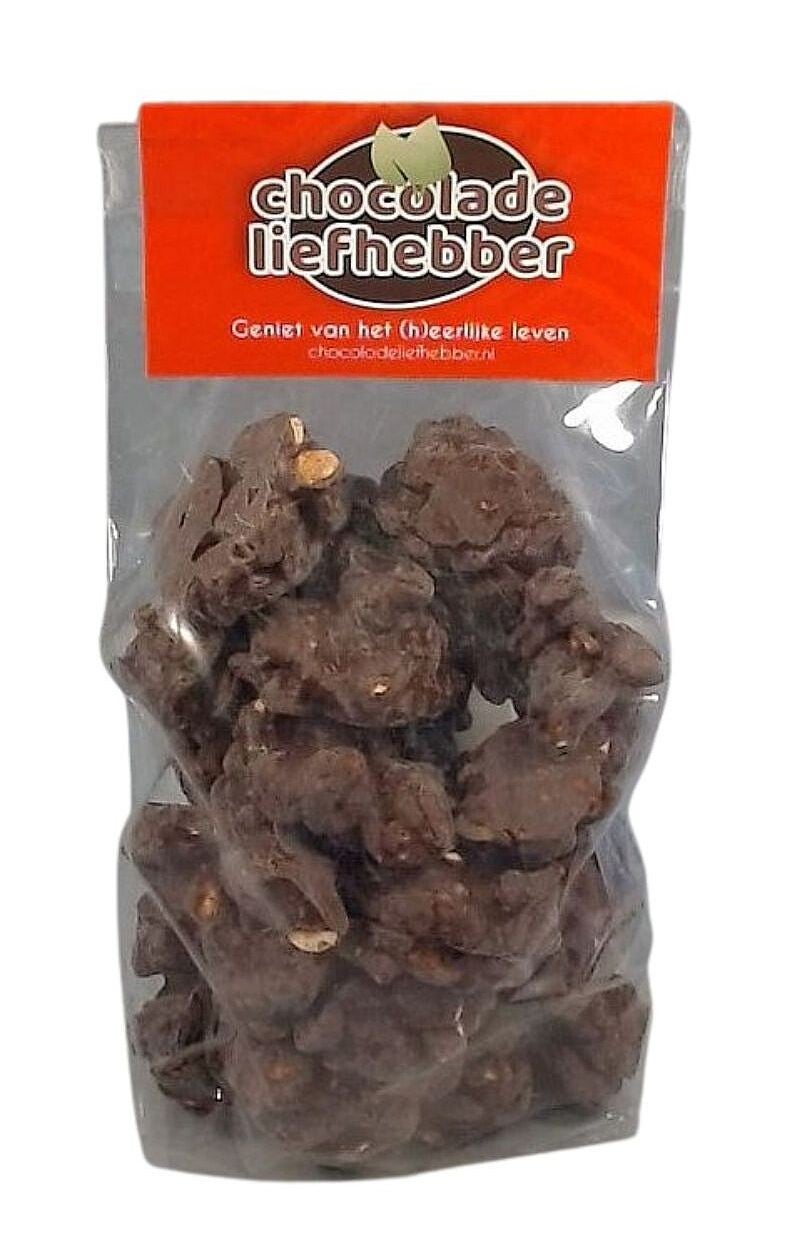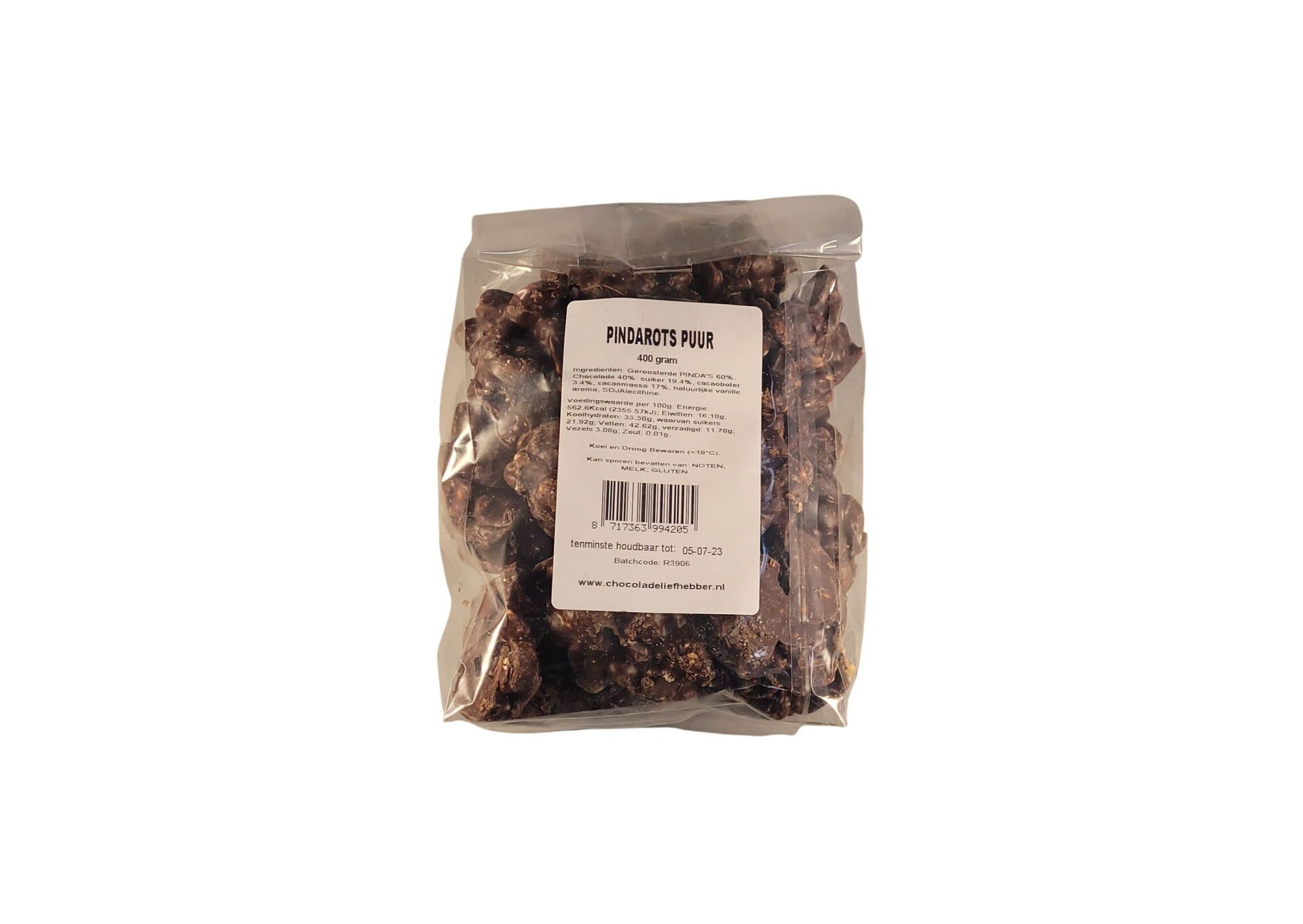 Geroosterde PINDA'S 60%. Chocolade 40%: suiker 19,4%, cacaomassa 17%, cacao boter 3,4%, natuurlijke vanille aroma 0,1%, SOJA lecithine 0,1%.