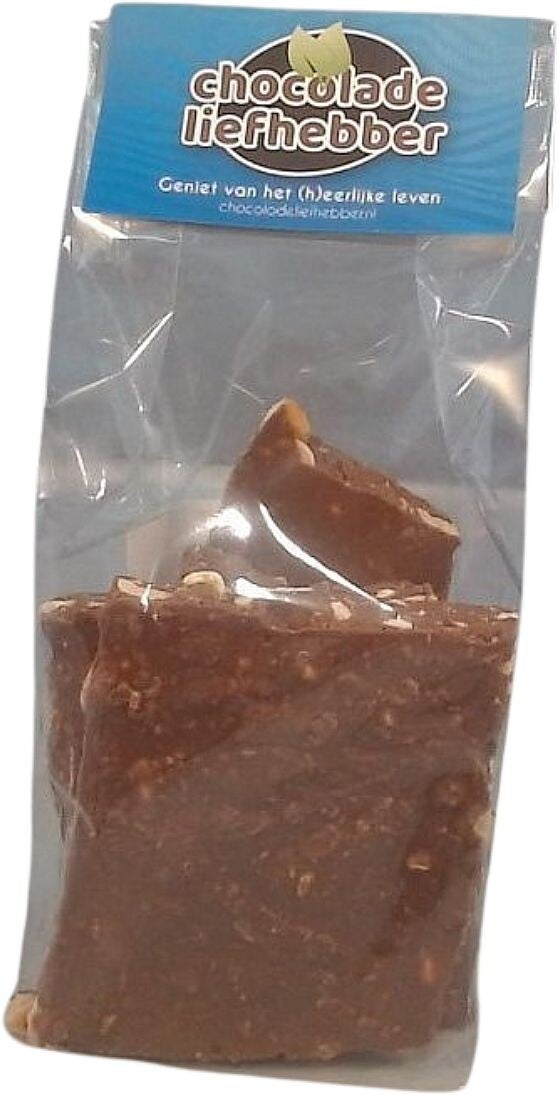 Chocolade 70%: suiker 37,44%, cacaoboter 10,85%, volle MELKpoeder 10,85%, cacao- massa 10,5%, natuurlijke vanille aroma 0,18%, SOJAlecithine 0,18%. Voorkomende Ingrediënten: PINDA'S, AMANDELEN, HAZELNOTEN, CASHEW, PECANNOTEN, PARANOTEN, WALNOTEN, Ananas (ananas, suiker, voedingszuur, SULFIET), Banaan (banaan, cocosolie, aroma, suiker), Rozijnen (rozijnen, zonnebloemolie), Cocos(cocos, TARWEzetmeel, glucose-fructose stroop, dextrose, suiker, RUNDERgelatine, zout), Drop (suiker, rietsuikermelasse, TARWEbloem, glucosestroop, TARWEzetmeel, zoethout wortelextract, kleurstof (E150c), salmiak zout, gelatine (varken), geharde kokosvet, kokosvet, invert suikerstroop, voedseladditieven), Aardbei (gedroogde aardbei, rietsuiker, zuurteregelaar, zwarte wortelconcentraat, aardbei aroma, SULFIET), Cranberries (cranberries, suiker, zonnebloem- olie), Crisp (rijstmeel, TARWEmout, suiker, palmvet, dextrose), Appel (appel, rietsuiker, zuur, SULFIET). Gojibessen, Moerbeien, Physalis, MUESLI (TARWEvlokken, HAVER vlokken, GERSTEvlokken, AMANDELEN, rozijnen), Stroopwafelkruimels (TARWEmeel, margarine, water, zout, zonnebloemlecithine, suiker, zuurteregelaar, aroma, caroteen, glucose-fructose stroop, EI, SOJAmeel, kaneel, natriumcarbonaat, SOJAlecithine), Kersen (kersen, suiker, glucose-fructose stroop, kersensap, E163, dextrose, E330, aroma, SULFIET), Bosbes (bewerkte bosbes, suiker, zonnebloemolie), Marshmallow (glucose stroop, suiker, dextrose, water, sorbitol, gelatine (varken), vanille), Mint aroma (propyleenglycol natuurlijke mint aroma). Dit product heeft altijd een wisselende samenstelling, alleen MELK chocolade blijft 70%.