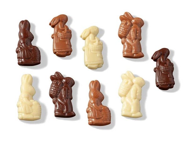 * Ambachtelijk gemaakte massieve paasfiguren.* Verpakt in geelkleurig geschenkdoosje.* topkwaliteit Echte Belgische Chocolade!